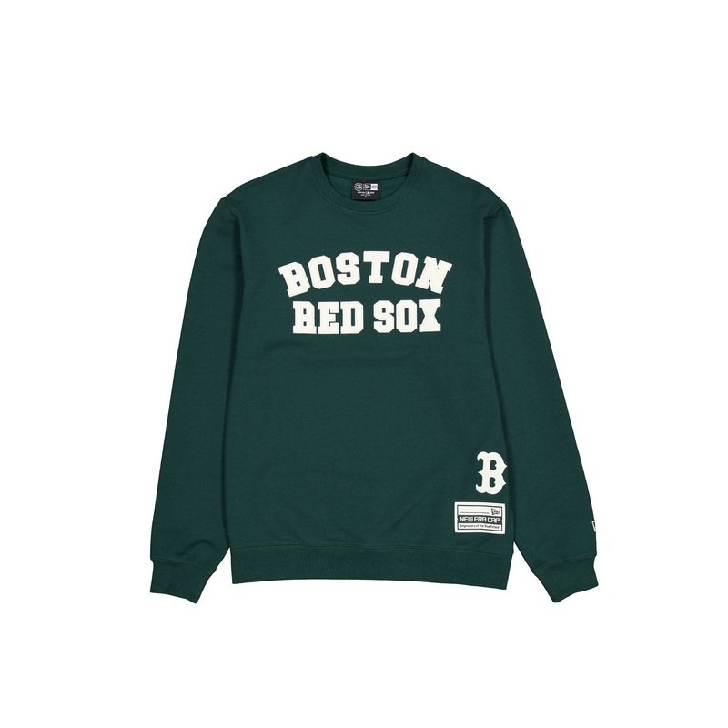 The Boston Red Sox Dark Green Logo Select Crewneck features a zig zag stitched twill applique Red Sox wordmark at the chest with an embroidered team logo above a woven tag at the left hip.