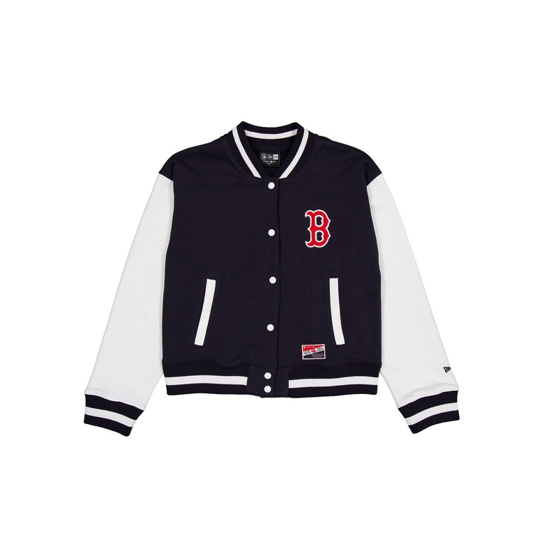 The Boston Red Sox Throwback Fleece Women’s Jacket features a chenille applique Red Sox logo at the left chest with a snap button closure and a screen-printed team wordmark at the rear.