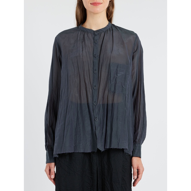 Pas de Calais semi sheer blouse featuring and gathered back yoke for a touch of sophistication. The frayed hem and wrinkled texture give this blouse a unique look.Band collarFront button closureChest pocketButtoned cuffsFrayed hemMaterialsFabric Content: 7