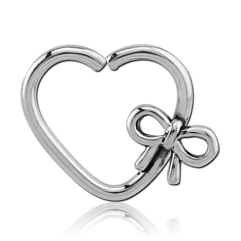 The 16 gauge heart shaped bow ring is approximately 3/8" in diameter and made from 316L stainless steel. If you're unsure how to open and close continuous rings (a.k.a. seamless), be sure to check out our video demonstration. Choose whether you'll be weari