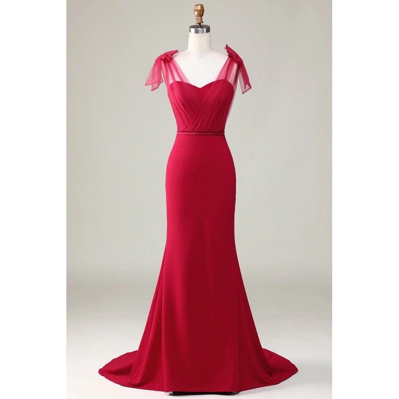 Be the first to review “Bowtie fishtail satin wine red long bridesmaid dress”