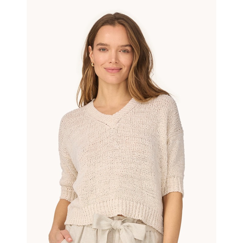 a year-round sweater with an easy fit. crafted from organic cotton, this v-neck sweater is designed for a relaxed fit and lightweight feel.
