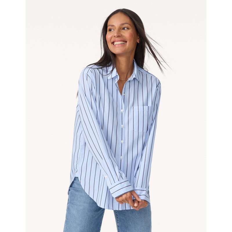 no need to hijack your boyfriend's closet. our essential boyfriend shirt is a comfortable take on tailoring that's inspired by the classics, with ease and versatility that knows no limits.stripe editionmother-of-pearl buttonscurved hem for easy tuckingstyl