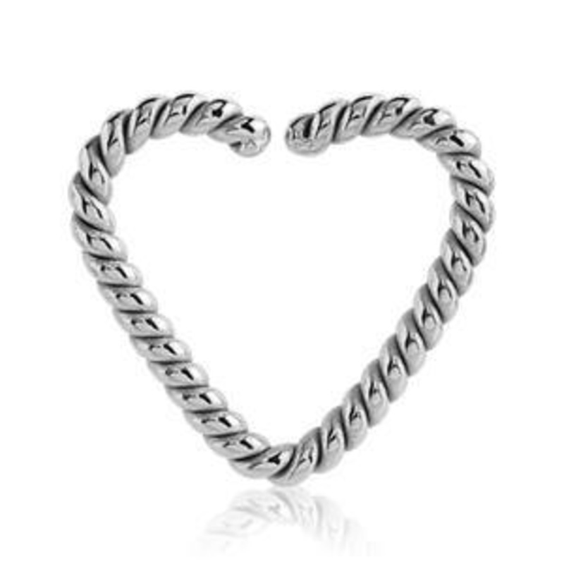 The 16 gauge heart shaped braided ring is made from 316L stainless steel. If you’re unsure how to open and close continuous rings (a.k.a. seamless), be sure to check out our video demonstration.
