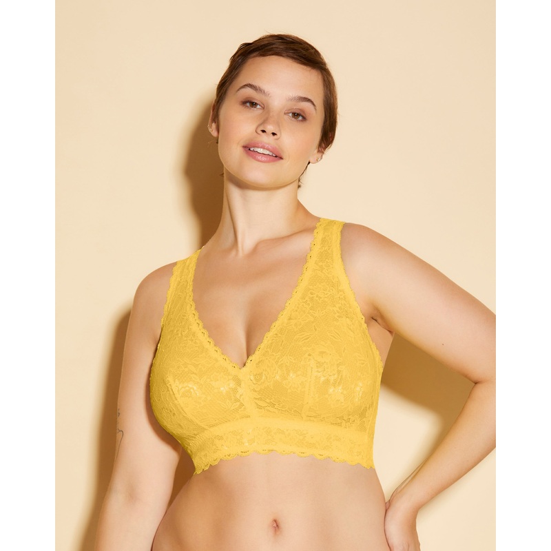 Bralette senza ferretto a spalline incrociate creata per chi ha il seno abbondante e la fascia stretta.Morbido ed elastico pizzo smerlato semi-trasparente.Coppe non imbottite, foderate con tulle rinforzato per maggiore supporto.Si infila senza slacciare, c