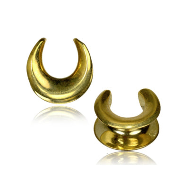 Thesebasic saddle spreaders are made fromyellow brass. They have a wearable area of 5/16″ between flares. These should fit so long as your lobes can handle large flares, but many customers prefer these one smaller size than the plug size they normally wear. Choose your size below.