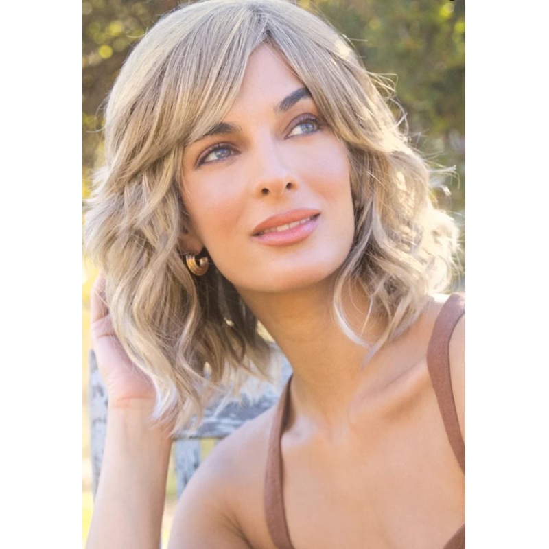 Braylen from our Amore Collection is a mid-length synthetic wig. This wavy ready-to-wear wig is a fun and playful wig with medium density. If you are looking for that beachy wavy curl pattern with fringe this is the wig for you. Our Braylen cap construction is Double Monofilament and lace front. The lace front is a hairline fusion technology with minimal lace front for a natural look. The Double Monofilament cap construction is combined with calibrated machine wefting along the sides and back. Braylen’s cap includes polyurethane tape tabs along the front and adjustable tabs in the back neck area. The result is a comfortable fit with a natural look that is both fashionable and easy to wear.