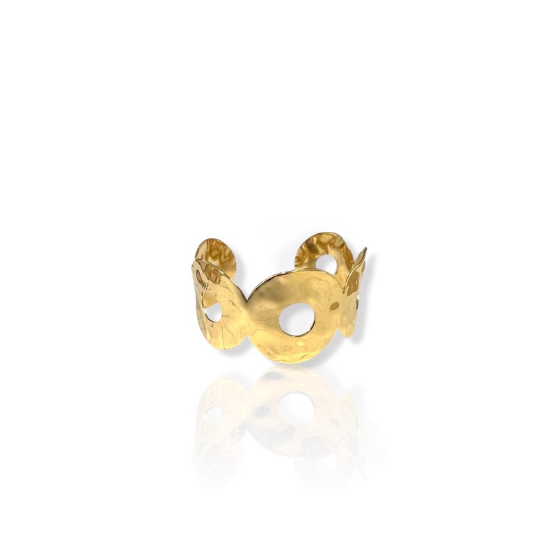 Brazalete dorado con anillas entrelazadas. Es ajustable.Son de acero y no pierde color. Puedes mojarlo.Por razones de higiene, las joyitas no se cambian ni se devuelvenComposicin: 100% acero alergnico Este articulo esta diseado y fabricado integramente en