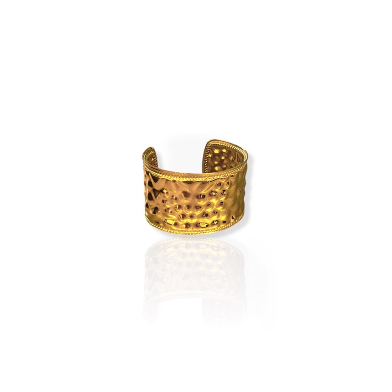 Brazalete dorado con efecto picado. Es ajustable.Estn hechos de acero quirrgico. Este material no pierde el color y no es alrgico.Material: acero alergnicoEste articulo esta diseado y fabricado integramente en Europa e importado por Sorellas