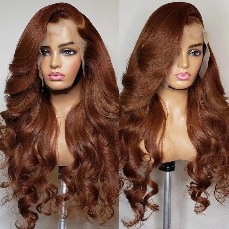 Brazilian Remy Deep Part Lace Front Human Hair WigTexture: CurlyLace Wig Type: Lace Front WigsMaterial Grade: Remy HairMaterial: Human HairBase Material: Swiss LaceColor of Lace: Medium BrownColour: Reddish BrownCap Size: Average SizeThe length of this bea