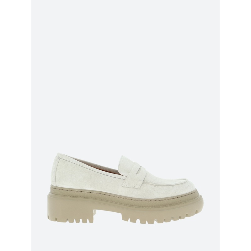 gravitypope sleek penny loafer with a chunky lug sole for an added utilitarian twist.Penny loaferSlip-on styleSaddle strapMoc toe stitchingRound toeMaterials Upper: suedeLining: leatherOutsole: rubberMade in ItalySize GuideListed in Italian sizing.Fits tru