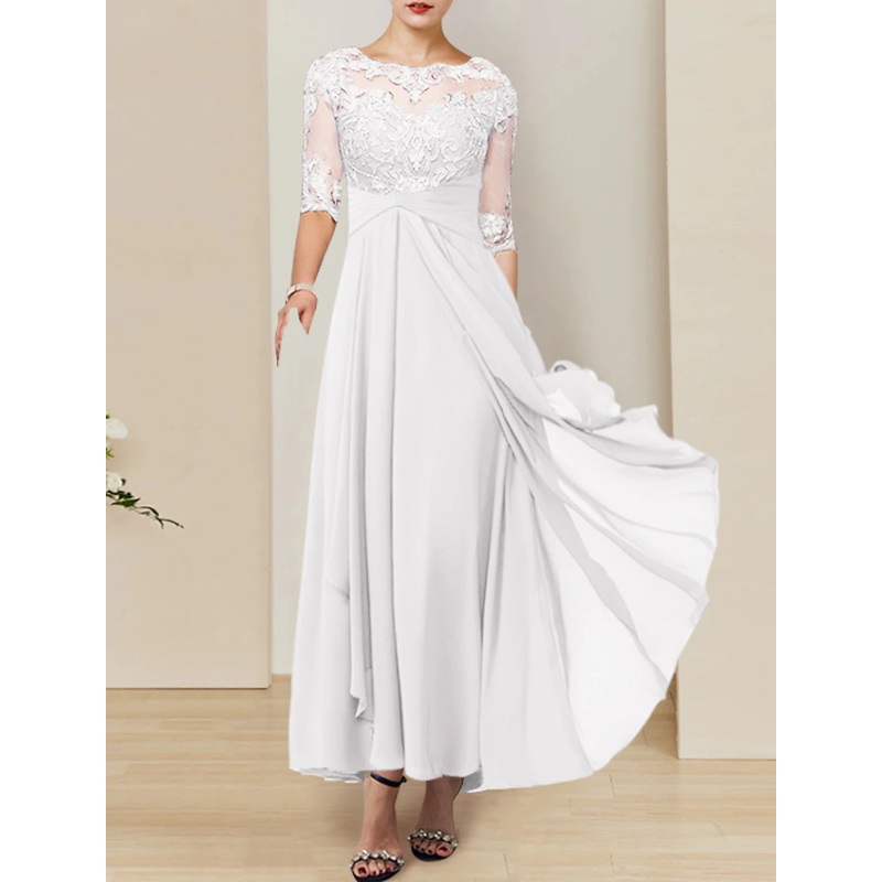 Bridal Shower Simple Wedding Dresses Wedding Dresses A-Line V Neck 3/4 Length Sleeve Tea Length Chiffon Bridal Gowns With Appliques Solid Color