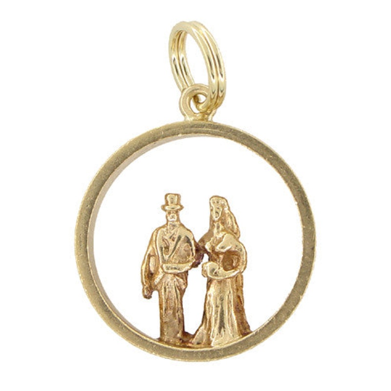 Bridegroom and Bride Wedding Charm in 14 Karat Gold