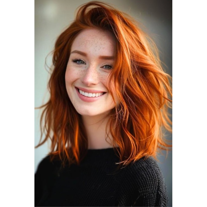 Color Options: While the shown color is a striking bright auburn red, the BRIDGETTE wig is available in a range of other colors to suit your personal style. From natural browns to bold shades, you can choose the hue that best complements your look.