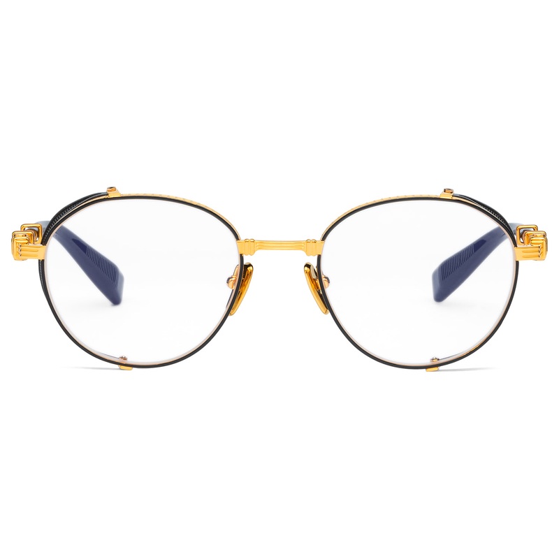 The intricate metal patterns of the Brigades side shields recall the precise and beautiful architectural patterns that our Japanese artisans pass by each day. For an unexpected pairing with those elegantly precise geometries, Olivier Rousteing and Akoni have channeled the 80s pop vibe that has dominated Balmains most recent collections, playing with distinctive frame shapes that were popular during MTVs earliest years and which still retain their nonconformist edge today. For Fall 2024, the popular Brigade has been given a new spin, with sunglass and optical options being given bold new colorways. For sun, the frame is now available in matte black, with gold details and grey lenses clearly mirroring the Balmain runways love for a rebellious biker attitude. In addition, optical Brigade designs have adopted a fresh spin on the iconic Balmain black-and-gold pairing. Handmade in Japan. Includes Balmain box, hard case, soft case, cleaning cloth, and 1-year manufacturer warranty.