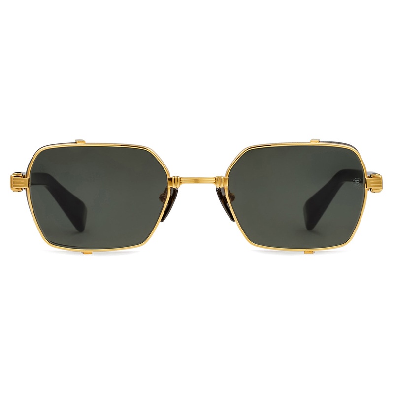 The Balmain Eyewear // Brigade III riffs on the distinctive 80s pop vibe that has been woven into the houses most recent collections, adding striking octagonal lenses and striking temples. Repeated allusions to Pierre Balmains love of incorporating architectural codes into his designs will be quickly noted, such as the tactile metal patterns inspired by the strict mathematical precision behind the French Capitals fascinating Haussmannian formulas. Akonis esign team has included several distinctive luxe touches as well, including the Brigade IIIs unique side shield, which riffs on the rich, cracked leather patterns that Olivier Rousteing often incorporates into his Paris Fashion Week. Handmade in Japan. Includes Balmain box, hard case, soft case, cleaning cloth, and 1-year manufacturer warranty.