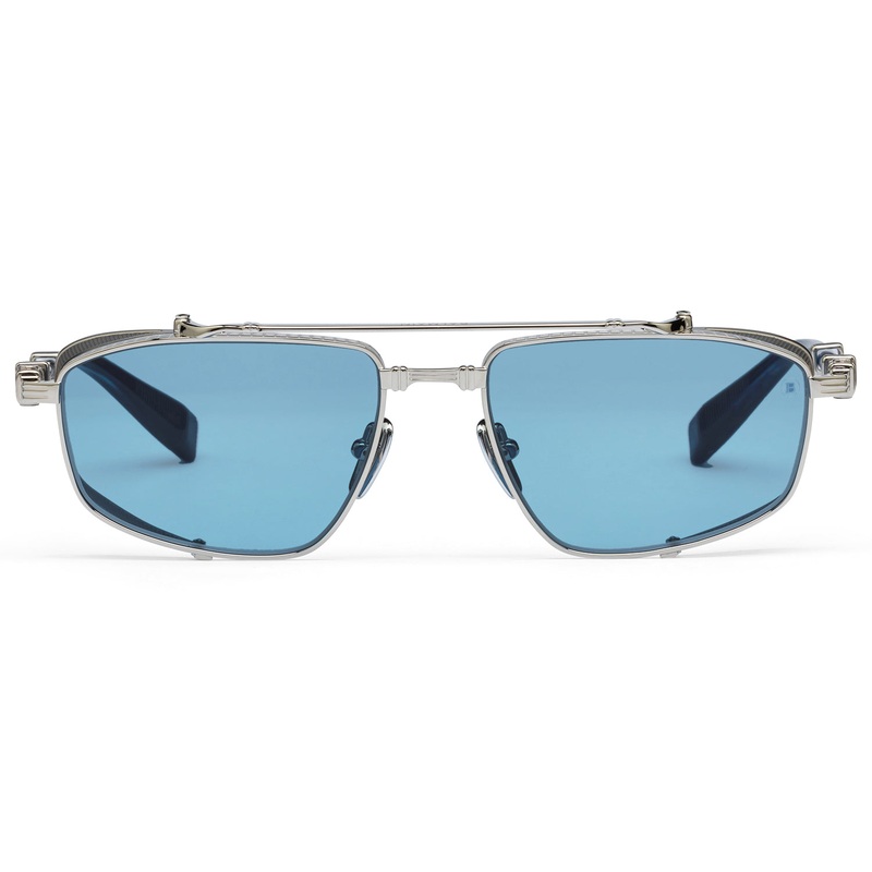 The singular Brigade style one of Balmain Eyewears bestselling optical styles has now been adapted for the sun. Available in three colorways, the eye-catching silhouette of the Brigade Sunglass frame relies on edgy, sharp detailing to emphasize the dynamic aviator front and its distinctive double bridge. The Brigades lines meld together several of Olivier Rousteings most acclaimed runway themes including an 80s pop-star spirit, classic French military stylings, and the most rebellious of biker attitudes. The signature luxury titanium temples and the patterned side cups underline Balmains origins, helping to make it very clear that the historic house will always demand perfection in each and every luxury embellishment. Handmade in Japan. Includes Balmain box, hard case, soft case, cleaning cloth, and 1-year manufacturer warranty.