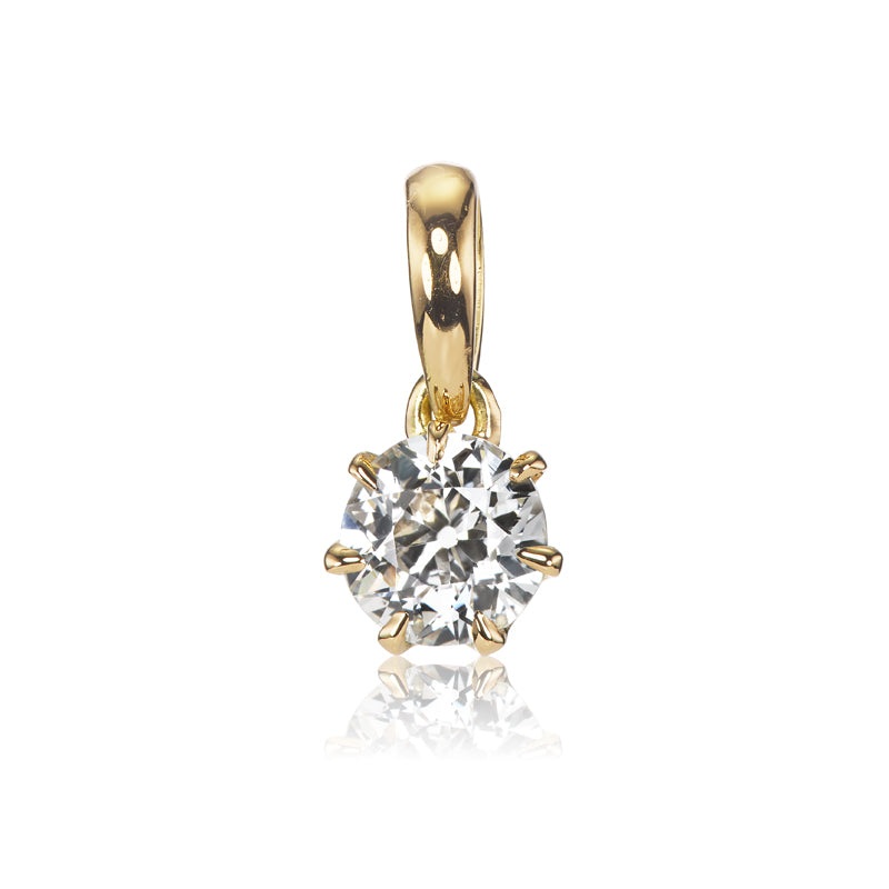 Transitional Cut Diamond Pendant NecklaceThe Brigette Necklace 0.90 is an AB original design made here in NYC. The necklace features a 0.90-carat Transitional Cut diamond of J color, I2 clarity. The diamond is prong-set in a pendant of our signature 18kt y