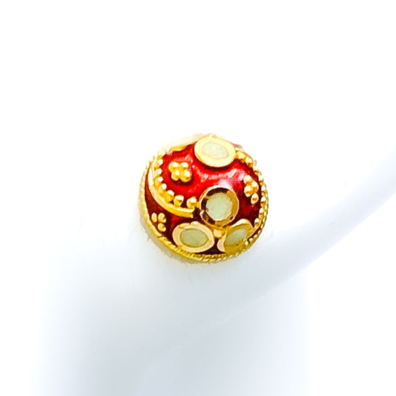 These 22k gold earrings feature a bright Meenakari design, perfect for adding elegance to any outfit. Weighing 2.4 grams, they showcase a yellow gold finish that enhances their intricate Meenakari work. With a length of 0.25 inches, these top-style earrings are secured with screw back posts, ensuring both style and practicality. Ideal for those who appreciate detailed and artistic jewelry, these earrings bring a touch of luxury and cultural charm to your collection. Suitable for any occasion, they enhance your ensemble with their bright allure.