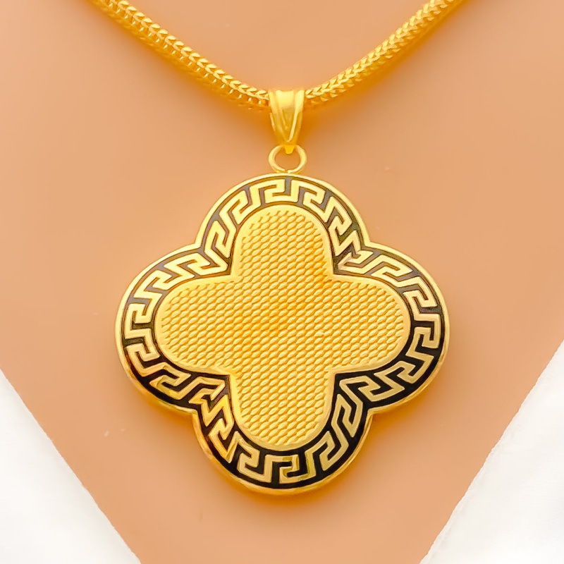 This exquisite 22k gold pendant, weighing 5.9 grams, features a brilliant enamel design that adds a splash of vibrant color to its sophisticated yellow gold finish. With a length of 1.5 inches, this pendant offers a perfect blend of elegance and bold style