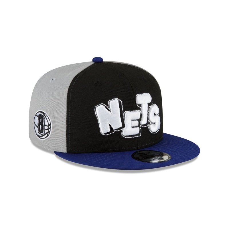 The Brooklyn Nets 2023 City Edition 9FIFTY Snapback features an embroidered Nets wordmark at the front black panels with an official NBA Logoman at the rear. Additional details include a team logo at the right-wear side, a red undervisor, and a snapback cl