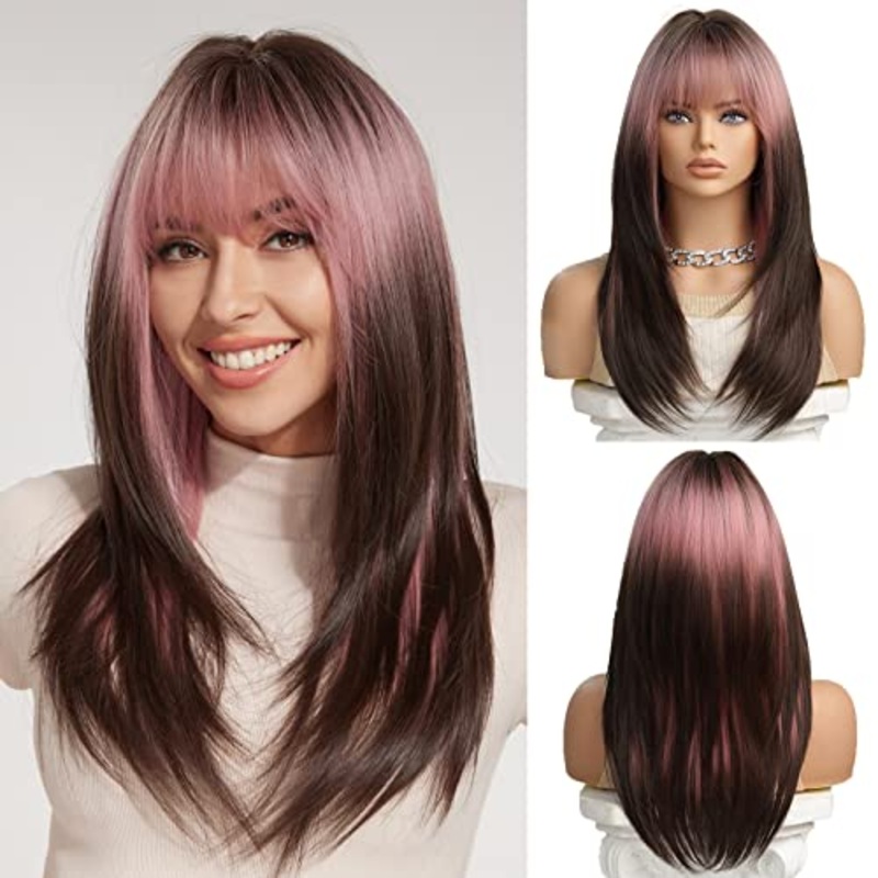 Brown Pink Blend Layered Heat Resistant WigThis Brown Pink Blend Layered Heat Resistant Wig is the perfect combination of style and comfort. It's made with 100% imported premium quality synthetic fibers and high-temperature resistance, making it look and f
