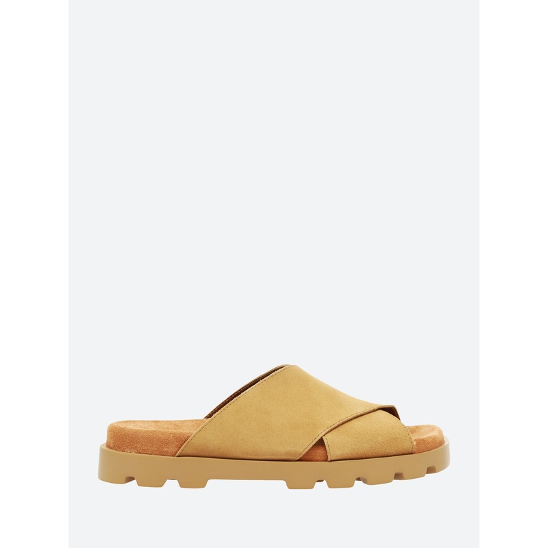 Part of Campers iconic Brutus family, this minimalist sandal features natural materials and an extra lightweight sole.Cross-over straps at the vampSlip-on styleSuede covered footbedOpen toeXL EXTRALIGHT outsole for lightness and shock absorptionMaterialsUp