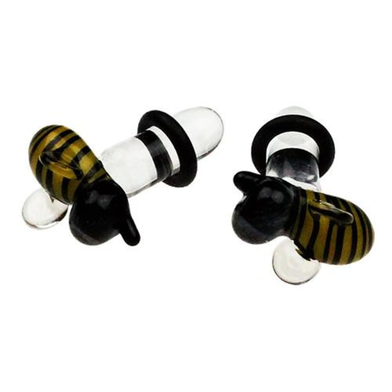 These single flare bumble bee plugs are made from hand blown borosilicate glass by Glasswear Studios. Choose your size below.