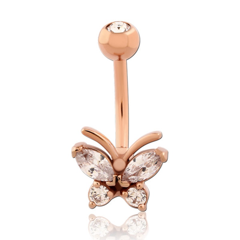 Butterfly CZ Rose Gold Belly Ring 14g – 3/8″ long (10mm) Clear Rose Gold Stainless