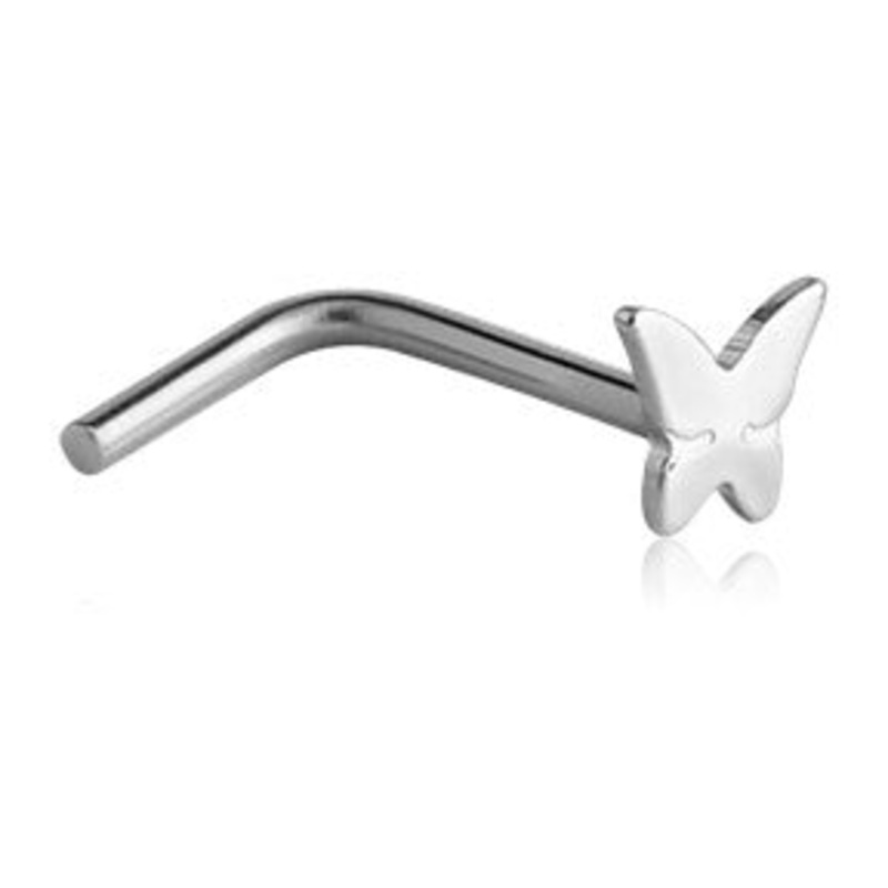 Butterfly Stainless L-Bend Nose Stud 20g – 1/4″ wearable (6.5mm) Stainless Steel