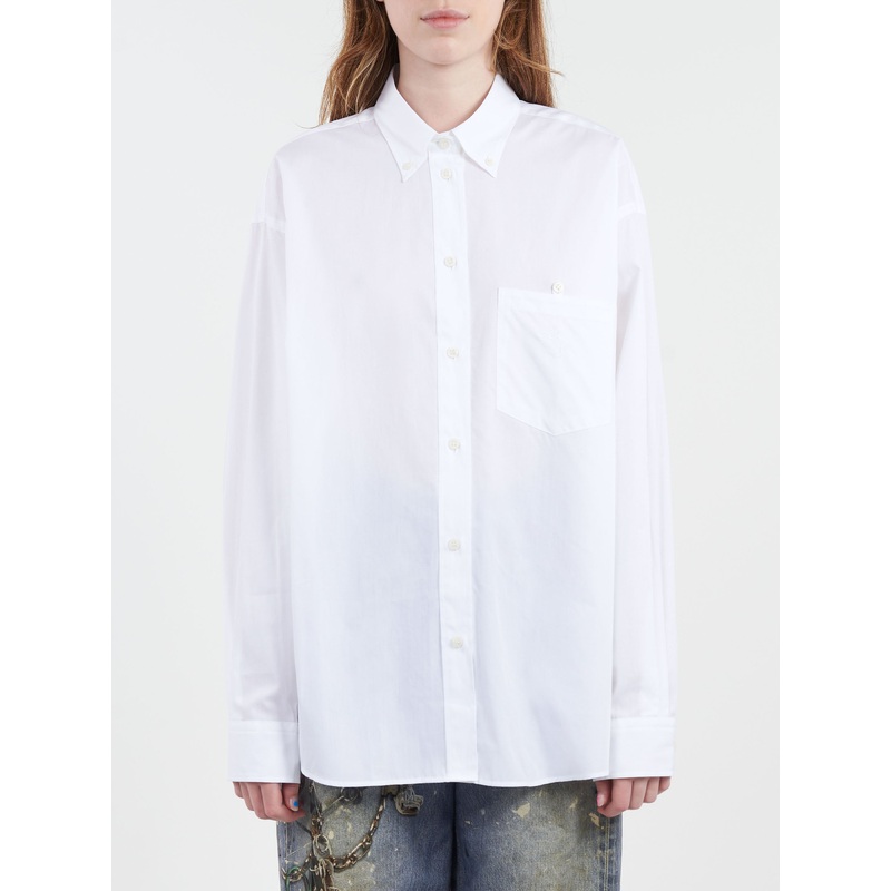 Button-up shirt is crafted from poplin cotton details with an Acne Studios logo embroidery. Cut to a regular fit and below hip length.Button-down collarFront button closureChest patch pocketButtoned cuffsRegular fitMaterialsFabric Content: 100% cottonSize