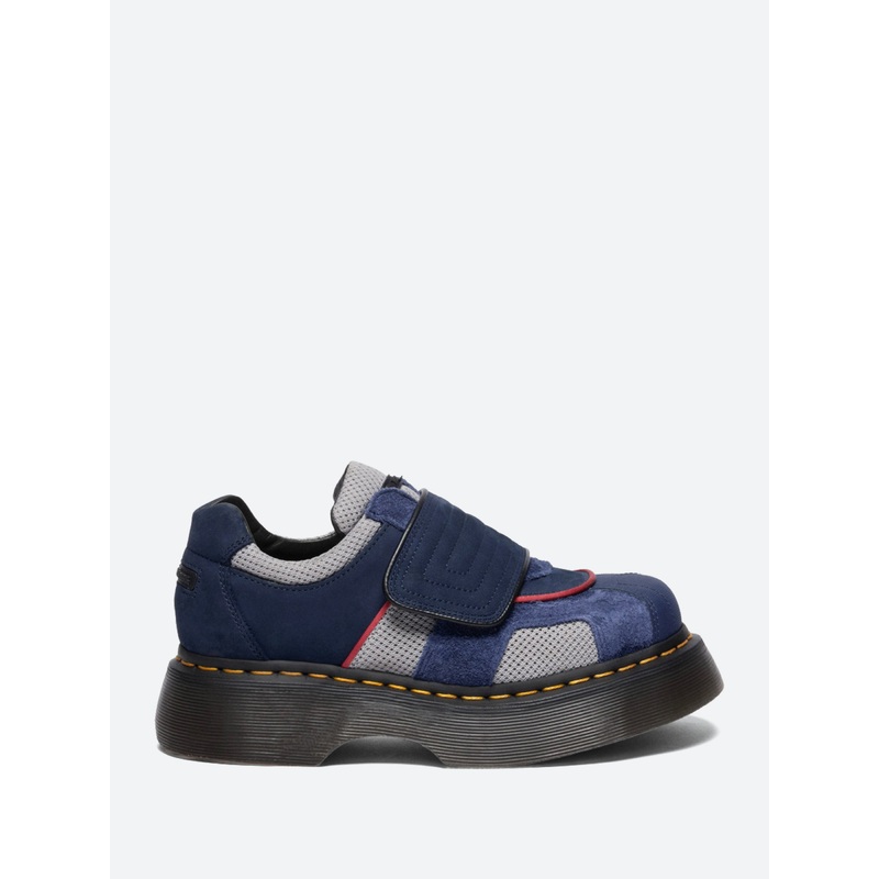 The single-strap Buzz shoe fastens with cant be bothered Velcro. And sits on the rounded, oversized platform sole. Finished with Dr. Marten’s classic yellow stitch and a MadeMe rubberized bubble logo.