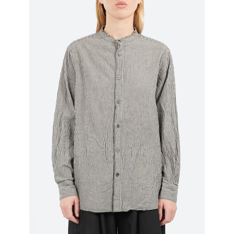 The Pas De Calais C/L Stripe Stand Collar Shirt offers a modern yet sophisticated design. It is crafted with a unique stand collar that features a raw edge for added texture and style. Made from a high-quality blend of cotton and linen, this shirt strikes