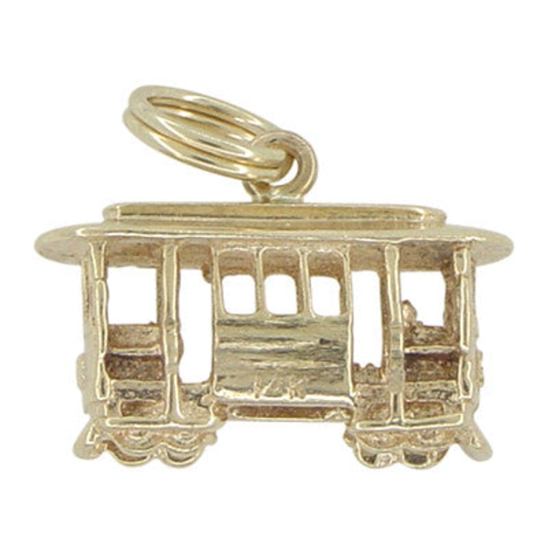 Crafted to order in solid 14K yellow gold,this trolley car pendantmeasures 5/8 inch wide by1/2 inch high, with a 14K yellow gold split ring bail for easy attachment to a charm bracelet or wear on a favorite neckchain.