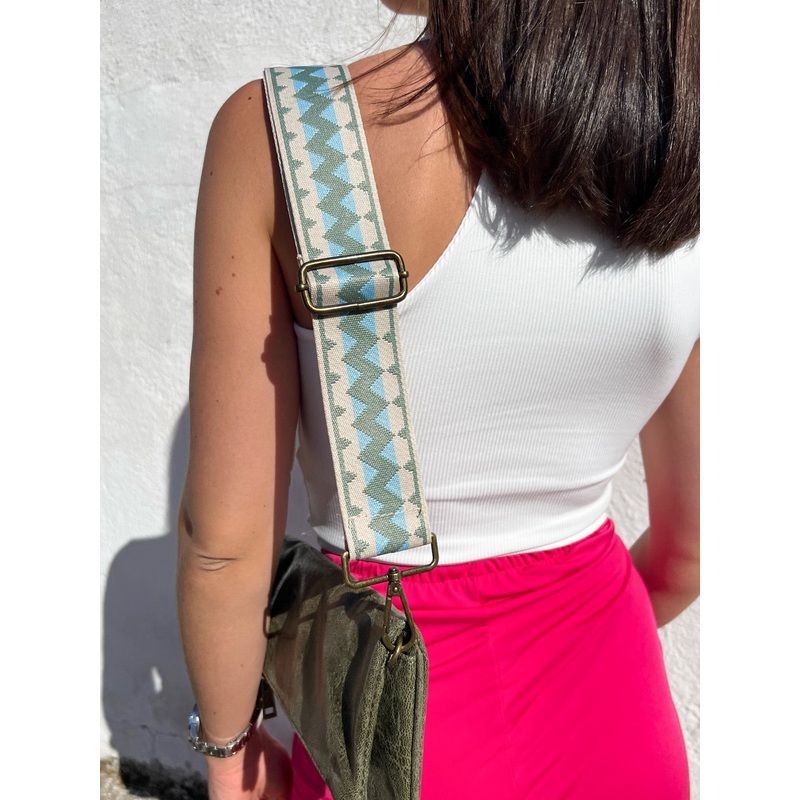 Cadena bandolera de multicolor con acabados dorados desgastados. La largada de puede ajustar y llevarlo tipo baguette o bandolera (bolso no incluido)