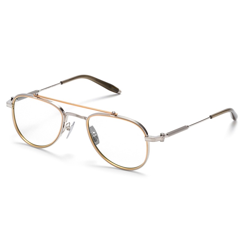 The Akoni // Calisto remixes the classic 1980s optical aviator with an innovative, double-rim design and a mechanically bolted brow bar inlaid with enamelcomplimentary accent colors add a clever touch of sophisticated style to this timeless classic. Other details include custom titanium temple with knurled round component and threaded tube screw system and ceramic nose pads w/ beta-titanium nose pad arms. Handmade in Japan. Includes Akoni box, case, cleaning cloth, and 1-year manufacturer warranty.