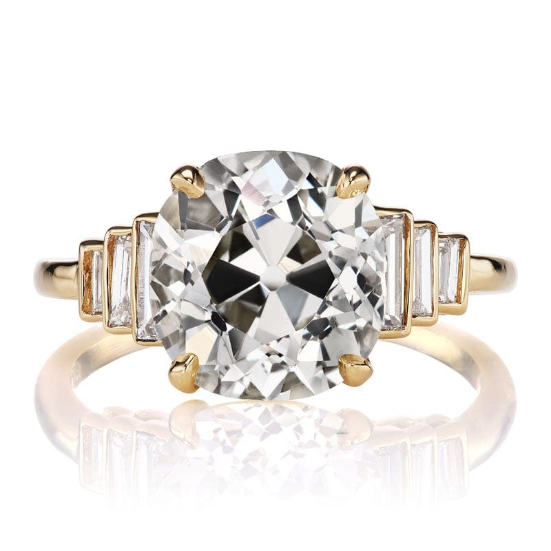 4.19 carat Old Mine Cut Engagement RingThe Camille 4.19 ring is an AB original design made right here in NYC. The ring centers a GIA-certified 4.19-carat Old Mine Cut diamond of L color, VS2 clarity. The stone is set in a 4 prong 18kt yellow gold setting.