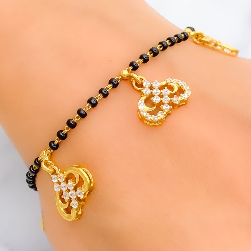 Captivating Adorned 22k Gold Black Bead CZ Bracelet