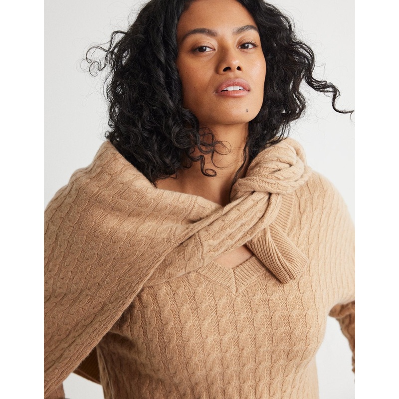 cashmere cable v neck pullover sweater
