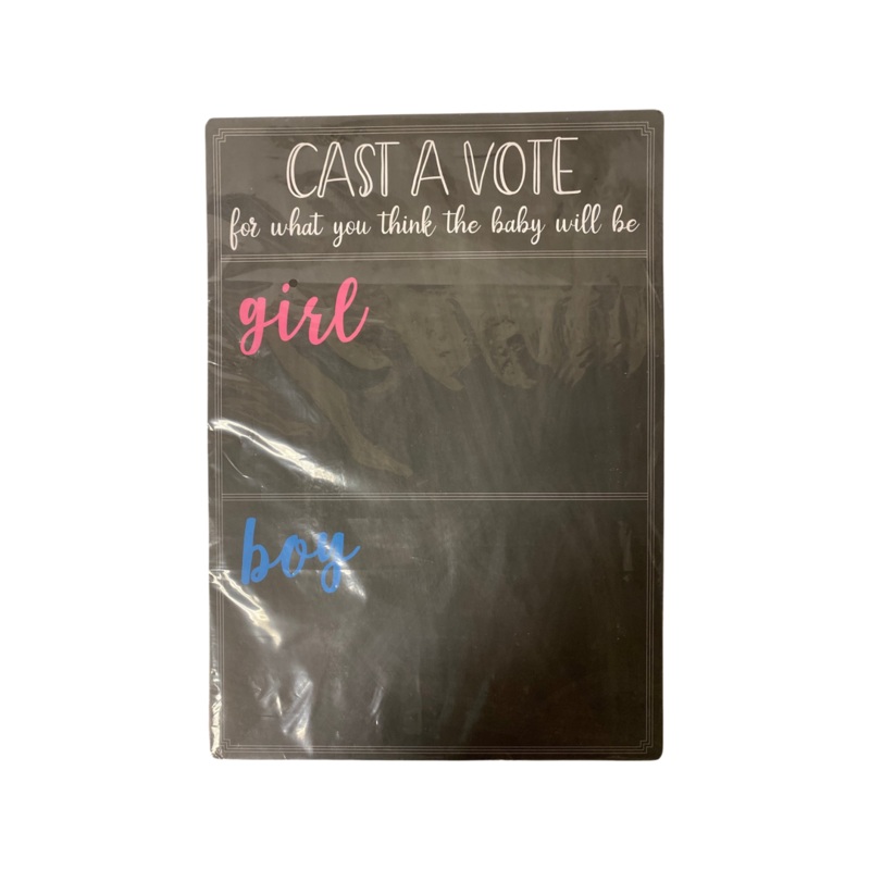 NewVote if you think the baby will be a boy or a girlThis sign does come with heart shaped voting stickers.Hx17 Lx12We are so excited to let everyone know that our Pacific Grove store is now open!! We are offering curbside pickup and local delivery for qua