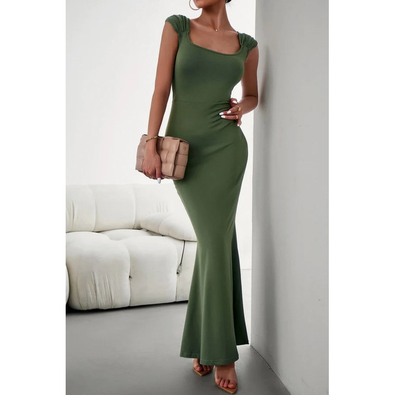 Casual solid color patchwork square neck one step dress for evening dress