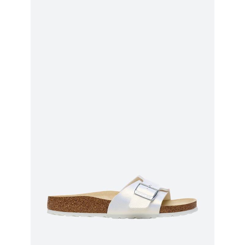 The design of the Catalina was inspired by the classic Madrid with a strap and metal buckle. The slightly wider strap lends this sandal a modern elegant appearance. This version comes in a shiny lizard design and exudes elegance and a touch of extravagance thanks to the iridescent metallic foil and the reptile skin look.
