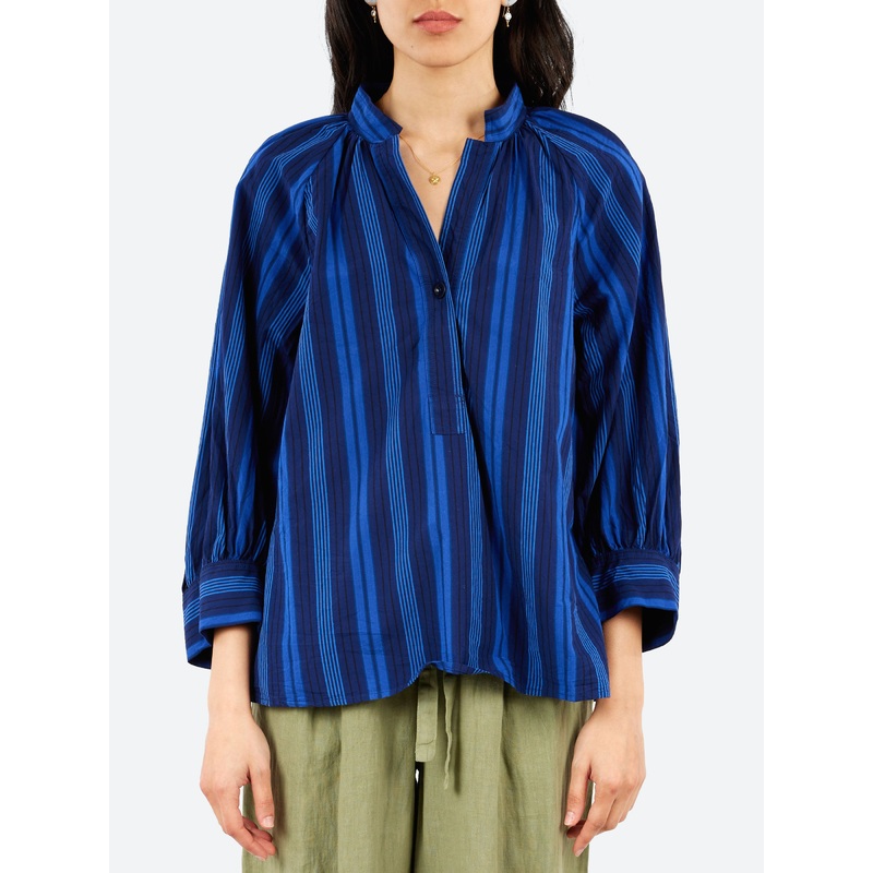 TOAST shirt is made from organic cotton and features wide graphic alternating stripes. With gathers at the neck and cuffs and finished with a single corozo button on the placket for simplicity.Band collarGathered neck and cuffsBracelet-length raglan sleeve