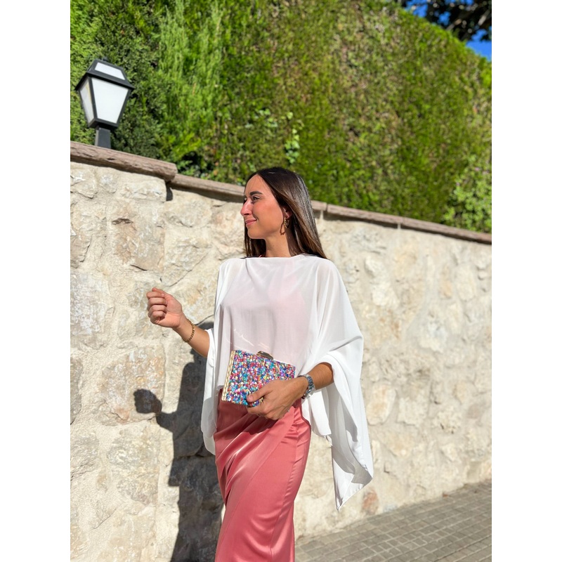 Chaqueta tipo chal en forma de capa. Tejido de gasa. Posibilidad de multiposicin