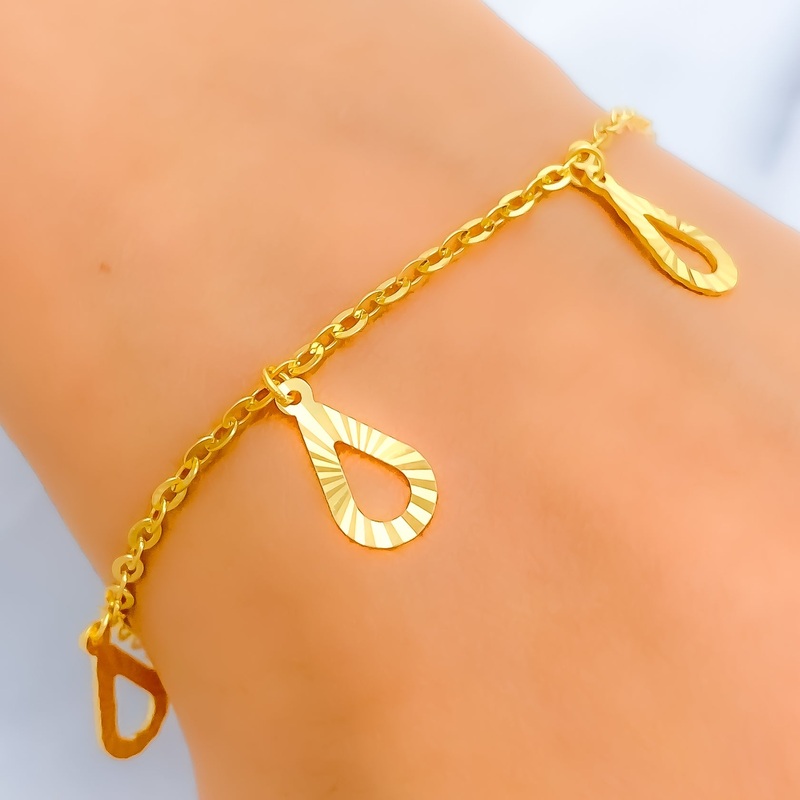 Discover the elegance of this bracelet, crafted with 22k gold weighing 4.4 grams. Its yellow gold finish enhances the charm of the raindrop design, creating a chic and timeless piece. With a bracelet length of 7.25 inches, it gracefully adorns the wrist. S