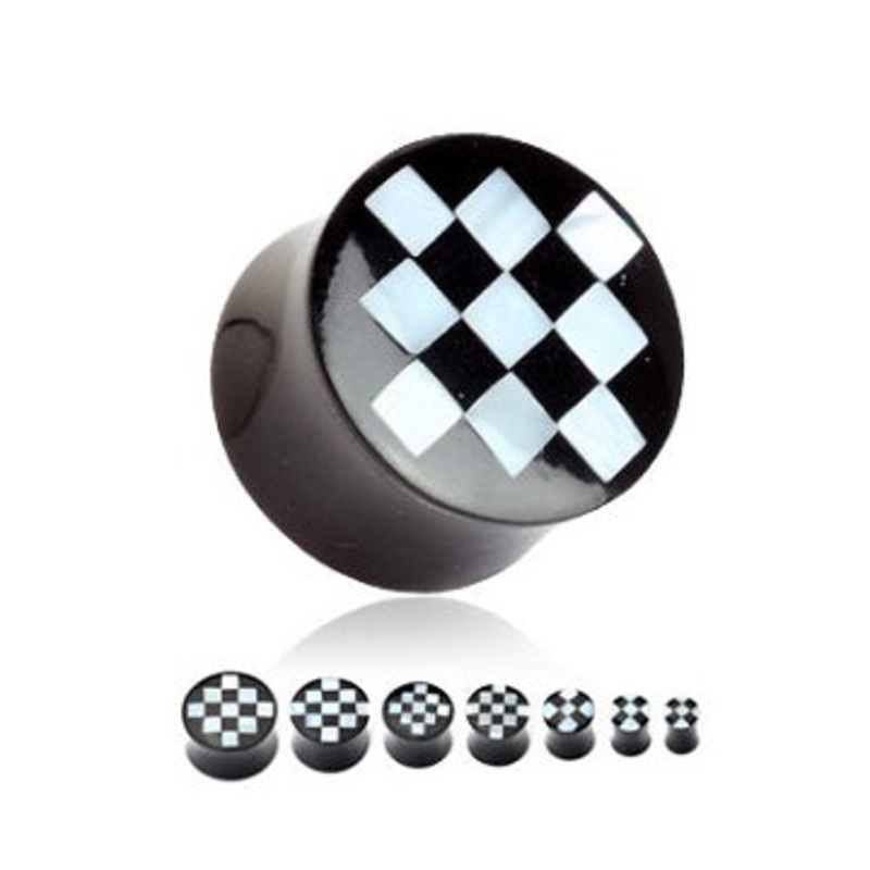 These double flarechecker plugs are made from handcarved water buffalo horn withmother of pearl inlay. Choose your size below.