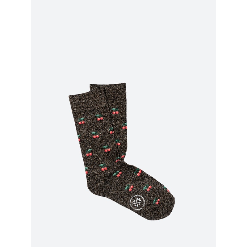 A touch of retro inspiration at your feet for a contemporary look.Calf-height socksRibbed cuffsAll-over cherry patternHeight: 18 cmMaterialsFabric Content: 52% cotton, 38% polyamide, 8% metalized polyester, 2% elastaneMade in FranceSize GuideOne size fits