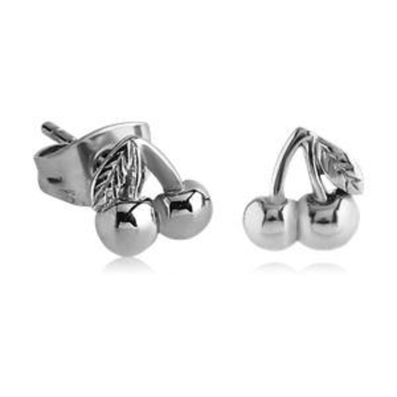 These 20 gauge cherry stud earrings are made from cast 316L stainless steel.