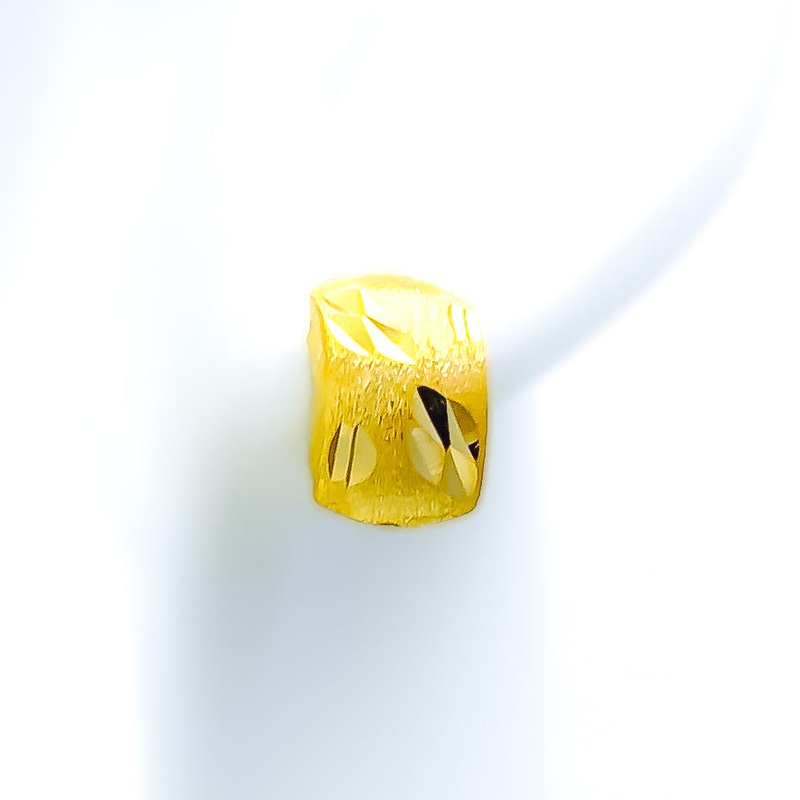These 22k gold earrings boast an elevated, graceful design with a polished yellow gold finish. Each earring weighs 2.4 grams and measures 0.5 inches in length. Designed as tops with secure push-back posts, they are perfect for those who appreciate understated elegance. These earrings are ideal for adding a refined touch to any attire, blending seamlessly with both professional and formal outfits, enhancing the wearer’s look with timeless sophistication.