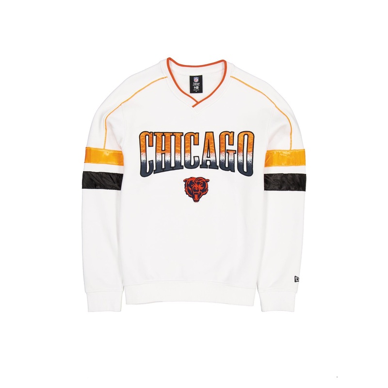 The Chicago Bears Sport Classics White Crewneck features a satin Bears wordmark appliqu and an embroidered logo at the front with satin sleeve stripes.Fabric: 80% Cotton, 20% Polyester